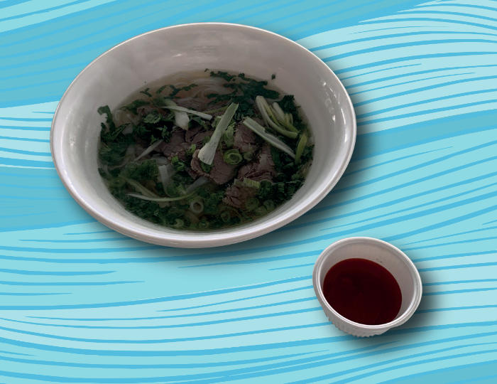 Pho pao noodle soup with beef